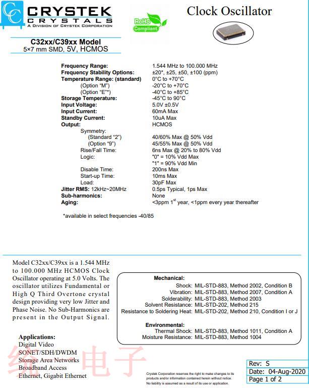 瑞斯克推出非常低抖动和相噪的OSC振荡器编码C3290-27.000,Crystek manufactures a broad line of frequency control devices and offers custom Quartz Crystal design and competitor replacement solutions. Crystek maintains a complete design and production facility in Fort Myers, Florida to assist in providing frequency solutions.