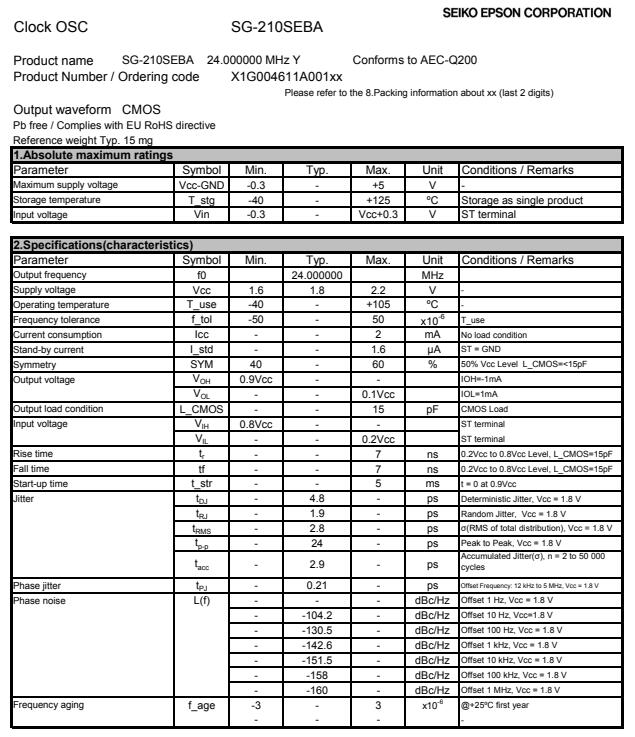 PCBA专用系列晶振产品SG-210SEBA有源晶振编码X1G004611A00100