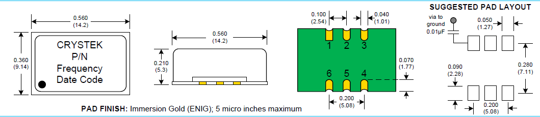 Crystek差分晶体振荡器,CCPD-912X-25-161.1328,电信应用晶振,尺寸图