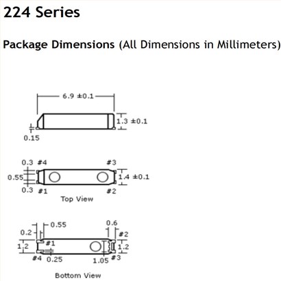 224-000307-20,7015mm,32.768KHz,Oscilent陶瓷晶振,尺寸图