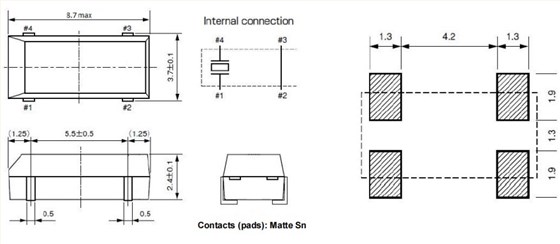 | Shunt Capacitance (C0) | - | 1.35 | - | pF | Pad 1 to Pad 4 Capacitance | ||||||||||||||||