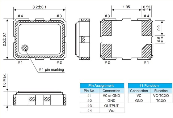 16MHz,CSX325T16.000M2-UT10,3225mm,CSX-325T,西铁城TCXO晶振,尺寸图