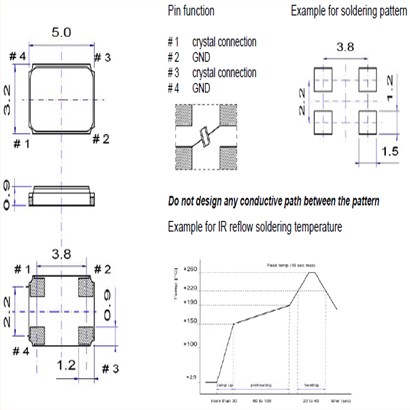 将晶振加热包装材料至+150°C以上会破坏产品特性或损害产品.如需在+150°C以上焊接石英晶振,建议使用SMD晶振产品.在下列回流条件下,对石英晶振产品甚至SMD无源晶振使用更高温度,会破坏晶振特性.建议使用下列配置情况的回流条件.安装这些贴片晶振之前,应检查焊接温度和时间.同时,在安装条件更改的情况下,请再次进行检查.如果需要焊接的晶振产品在下列配置条件下进行焊接,请联系我们以获取耐热的相关信息.
