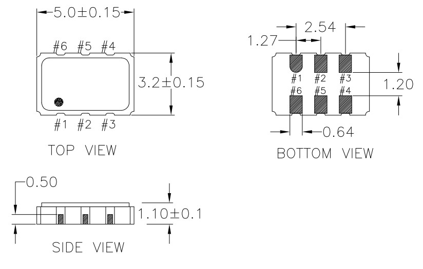 5032mm,XUN536100.000JS6I,100MHz,IDT物联网应用晶振, 尺寸图